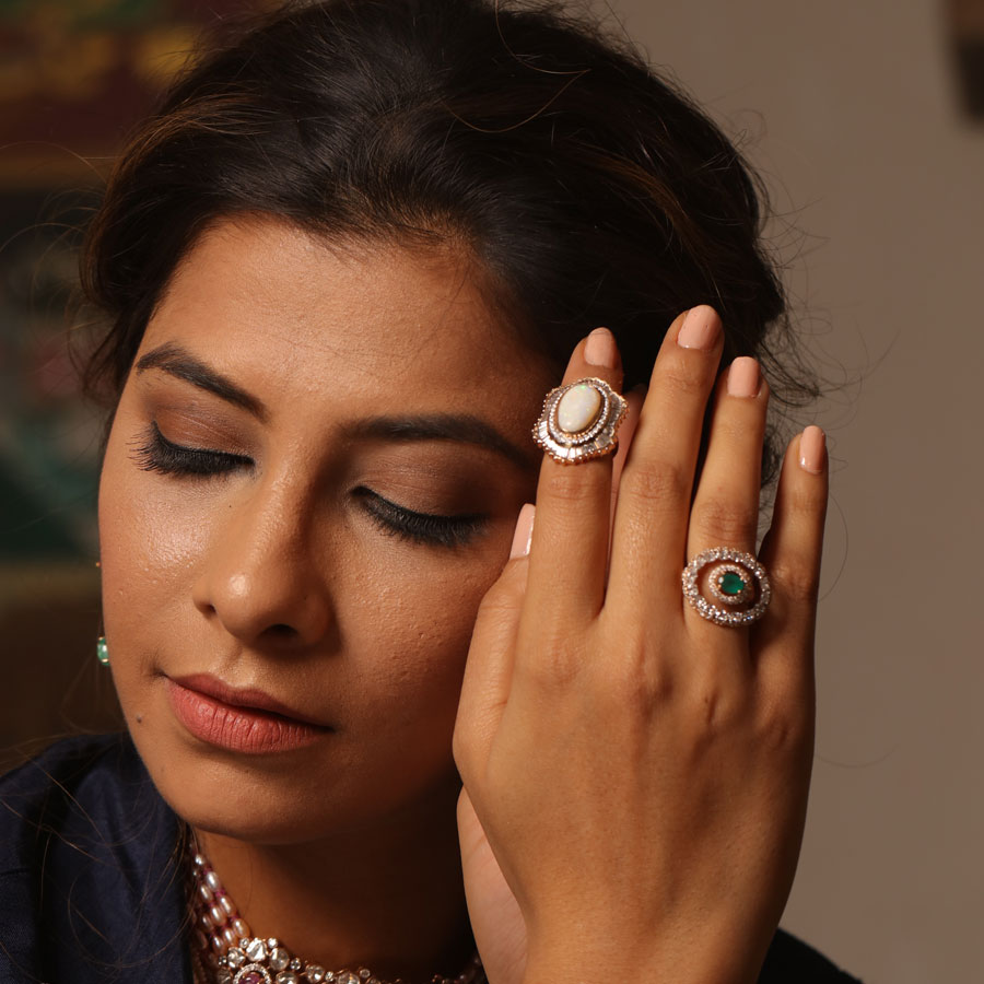 Adah means elegance, it means grace and poise of a woman which leaves everyone smitten and spellbound. And paying ode to this ethereal elegance is Adah by Vajra Jewels, our newest Vilandi Jewellery collection, handcrafted with uncut, real diamonds, classy Pearls and gorgeous Emeralds.
